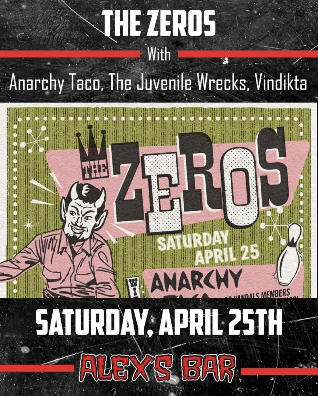 The Zeros with Anarchy Taco, The Juvenile Wrecks, Vindikta